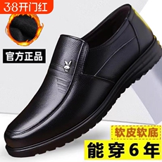 软底软皮鞋男士秋冬舒适爸爸中老年休闲鞋子加绒保暖防滑真皮男鞋