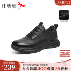 红蜻蜓皮鞋男2025冬季加绒棉鞋真皮中年男士通勤保暖舒适爸爸鞋