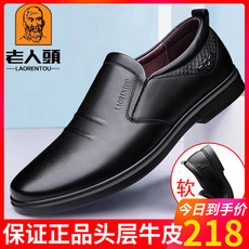 老人头皮鞋男秋冬新款商务休闲皮鞋男士真皮透气男鞋软底爸爸鞋子