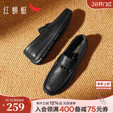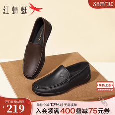 红蜻蜓男士休闲皮鞋新款一脚蹬男鞋豆豆乐福鞋软底舒适真皮爸爸鞋