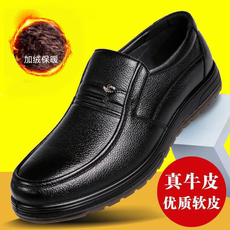 爸爸鞋冬季皮鞋男士加绒防滑真皮牛筋底中老年人休闲男鞋透气棉鞋