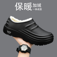 厨师男鞋冬季加绒保暖厨房专用工作鞋防水防滑防油大码黑色劳保鞋