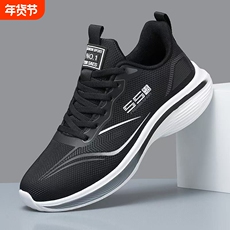 新款厚底男鞋秋冬透气网面跑步鞋大码软底男士休闲运动旅游鞋潮鞋