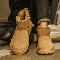 木林森男士棉鞋冬季大码真皮羊毛雪地靴皮毛一体加绒加厚休闲皮鞋