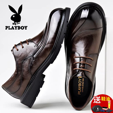 花花公子皮鞋男真皮商务正装宽脚大头内增高结婚新郎休闲棕色冬季