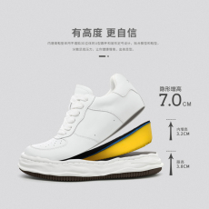 真皮牛皮德训鞋男女同款隐形内增高5.5cm春百搭小白鞋厚底板鞋子