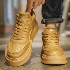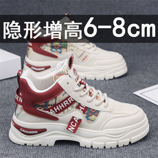 高帮男鞋春季运动厚底内增高潮牌百搭休闲小麦色板鞋真皮男士皮鞋
