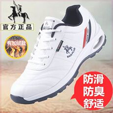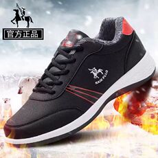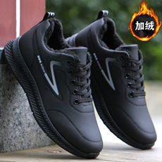皮面防滑男鞋子潮鞋秋冬季休闲鞋软底跑步鞋运动鞋男加绒防水舒适
