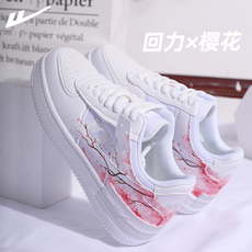 回力ow联名樱花女鞋男鞋空军一号联名款板鞋手绘鞋情侣鞋小白鞋子