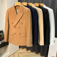 痞帅男士休闲灯芯绒西服轻奢型男修身商务绒布西装时尚单西外套潮