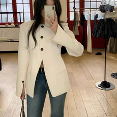 N0005日单女装NBB春秋新款无领休闲西装职业装外套通勤OL套装修身