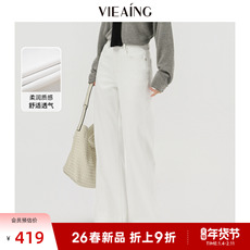 VIEA.ING薇迎商场同款白色牛仔裤女2026春新款阔腿裤显瘦裤子长裤