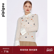 [商场同款]米皇2025秋冬新品圆领绣花羊绒女衫时尚绣花纯羊绒毛衣