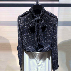 正品哥家女装2025年秋季新款百搭长袖网纱上衣碎花黑色圆点衬衫女