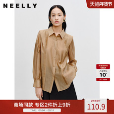 NEELLY纳俪商场同款天丝长袖衬衫春新款小众设计感通勤泡泡袖上衣