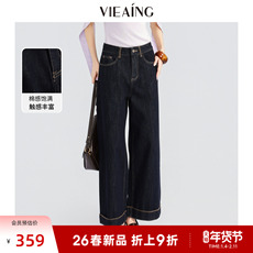 VIEA.ING薇迎商场同款阔腿牛仔裤女2026春季新款蓝色显瘦裤子长裤