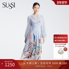 SUSSI/古色季新款商场同款紫罗兰印花优雅通勤连衣裙女装
