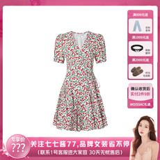 【七七酱直播间】商场同款 摩萨克秋装V领短袖高腰樱桃印花连衣裙
