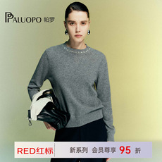 PALUOPO/帕罗【商场同款RED系列】秋冬圆领纯山羊绒衫女绣花毛衣