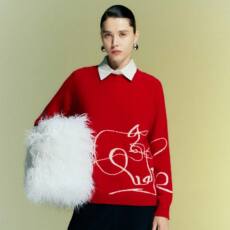 帕罗【商场同款】RED红标 创意彩绘|秋冬V领新款羊绒衫开衫毛衣女