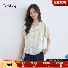 【商场同款】INSHOP新款甜美波点短袖衬衫女复古插肩袖单排扣上衣