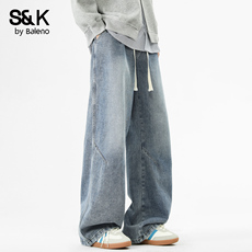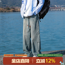 kernhafen 美式拖地阔腿牛仔裤男复古水洗慵懒宽松直筒裤子