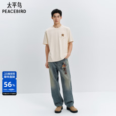 太平鸟男装 原牛百搭牛仔裤男士潮牌水洗宽松直筒牛仔裤休闲裤子