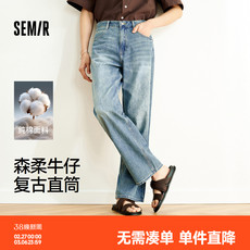 森柔|森马牛仔裤男夏季美式宽松舒适直筒裤复古水洗薄款纯棉长裤