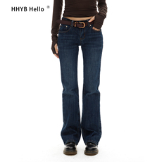HHYB别来无恙 戴文青木低腰微弹水洗复古简约猫纹牛仔裤 Q254023