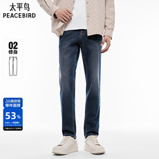 太平鸟男装牛仔裤春秋款宽松水洗原牛丹宁明线复古耐磨裤子潮