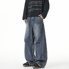海上公路做旧水洗复古牛仔裤男士四季款宽松直筒时尚百搭休闲裤子