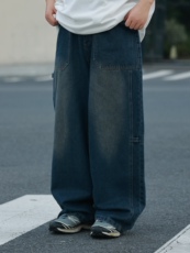 重磅3D立体剪裁哈伦大口袋弯刀牛仔裤美式复古水洗宽松锥形小脚裤