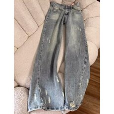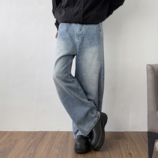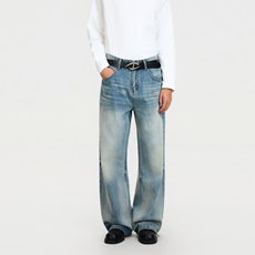 19otiwtt美式复古百搭休闲直筒裤水洗做旧牛仔渐变设计感垂感裤男