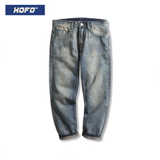 xofo新款日系复古九分牛仔裤男款冬直筒宽松水洗赤耳丹宁裤子潮