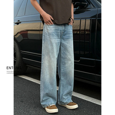 设计师款!复古做旧水洗!2025秋季新款男士时尚直筒阔腿牛仔裤潮