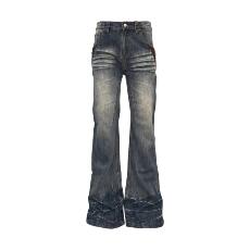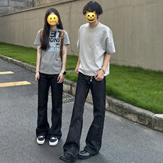 22FW自主巴家Flared黑灰水洗破坏做旧喇叭直筒潮牛仔裤91yxng同款