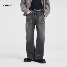 XAKA2024春季新款美式复古宽松阔腿牛仔裤男水洗做旧直筒宽松长裤