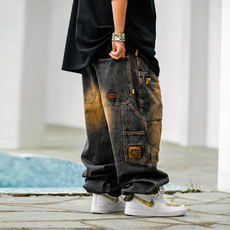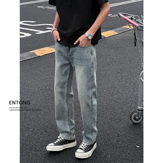 男士水洗做旧黄泥牛仔裤男宽松直筒夏季潮牌新款痞帅工装阔腿长裤