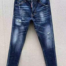 2024秋季新款D2潮男水洗磨破洞补丁油漆百搭修身小脚蓝色牛仔裤男
