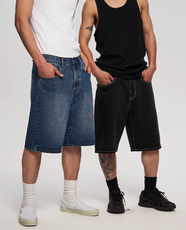 AVENUE&SON大道之子滑板直筒阔腿水洗牛仔裤牛仔短裤街舞