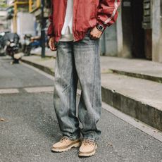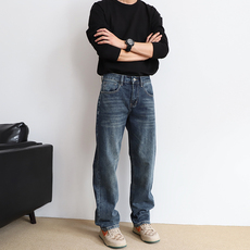 设计师线!复古做旧水洗!秋季外贸男士弹力宽松直筒休闲牛仔裤潮