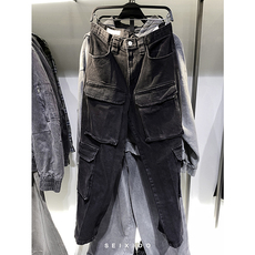 柜529!秋冬新款男装宽松多口袋工装重水洗休闲牛仔裤1538205长裤