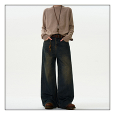 MADWITCH复古泥染做旧水洗牛仔裤男女宽松休闲vintage直筒阔腿裤