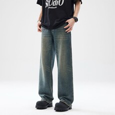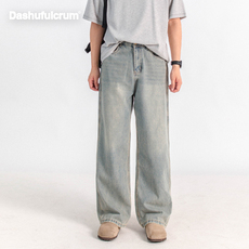 日系古着水洗牛仔裤男潮流宽松垂坠感直筒裤ins韩版潮流阔腿长裤