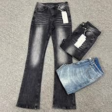 Gangzy日本冈山牛仔水洗猫须微喇刀割破坏巴黎风牛仔flared长裤