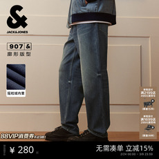 HM男装牛仔裤春季复古水洗牛仔裤中腰阔腿加厚棉质直筒裤0979945