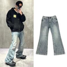MADWITCH新款复古vibe水洗做旧微喇牛仔裤男美式vintage直筒裤子