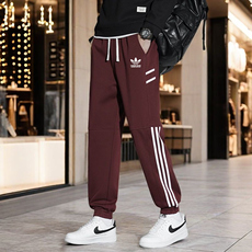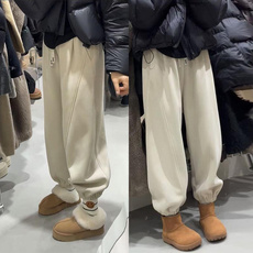 奥特莱斯2024秋冬季纯棉运动裤子男士加绒束脚裤休闲裤卫裤女长裤