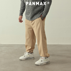 PANMAX潮牌大码男装加绒线条感卫裤秋冬保暖宽松直筒棉质束脚裤