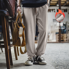 春秋季潮流修身休闲裤子男士痞帅潮牌加绒高级感炸街九分束脚裤男